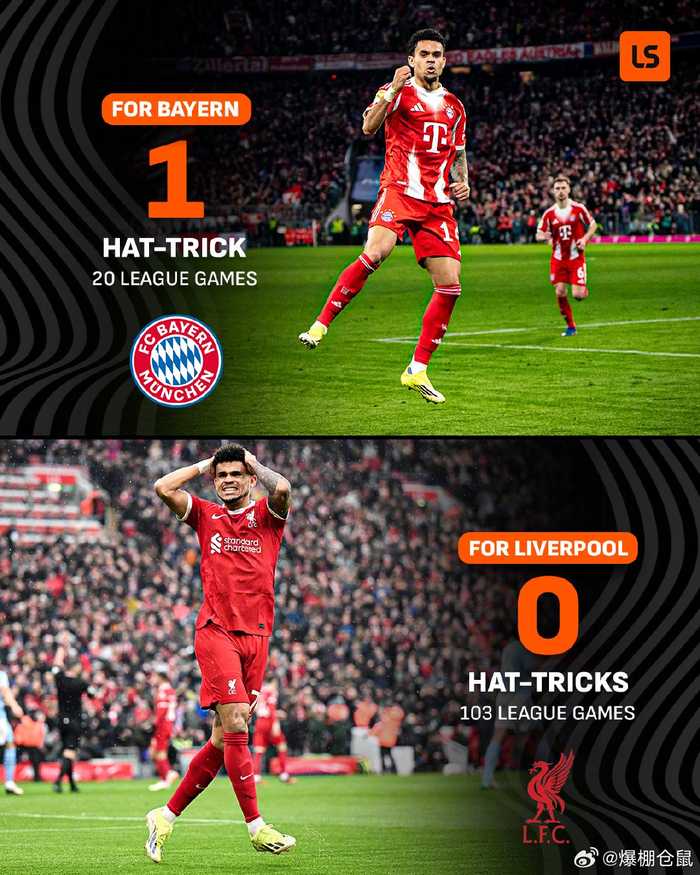 【拜仁生涯首个帽子戏法】拜仁5比1霍芬海姆,迪亚斯成为J罗后,第二位在德甲戴帽的哥伦比亚籍球员,同时他在英超103场没有戴帽,德甲20场就戴帽了。